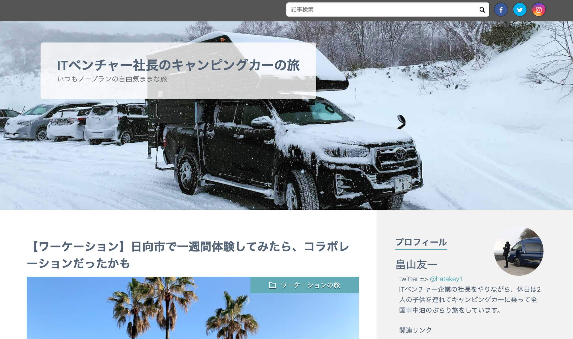 - 全国各地をキャンピングカーで旅しながら情報発信